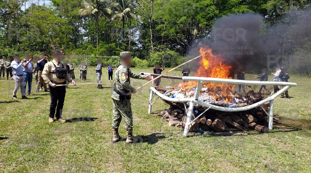 La Fiscalía General de la República (FGR), en coordinación con la Secretaría de la Defensa Nacional (Defensa), llevó a cabo la incineración de más de 400 kilos de narcóticos y diversos objetos del delito, en la ciudad de Tapachula de Córdova y Ordóñez.