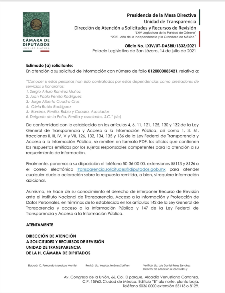La solicitud de nuestro valiente ciudadano fue recepcionada en enero del 2021 y turnada a las direcciones administrativas de la Dirección General de Inteligencia, Dirección General de Investigación, y la Dirección General de Servicios Especiales de la Secretaria de Seguridad.