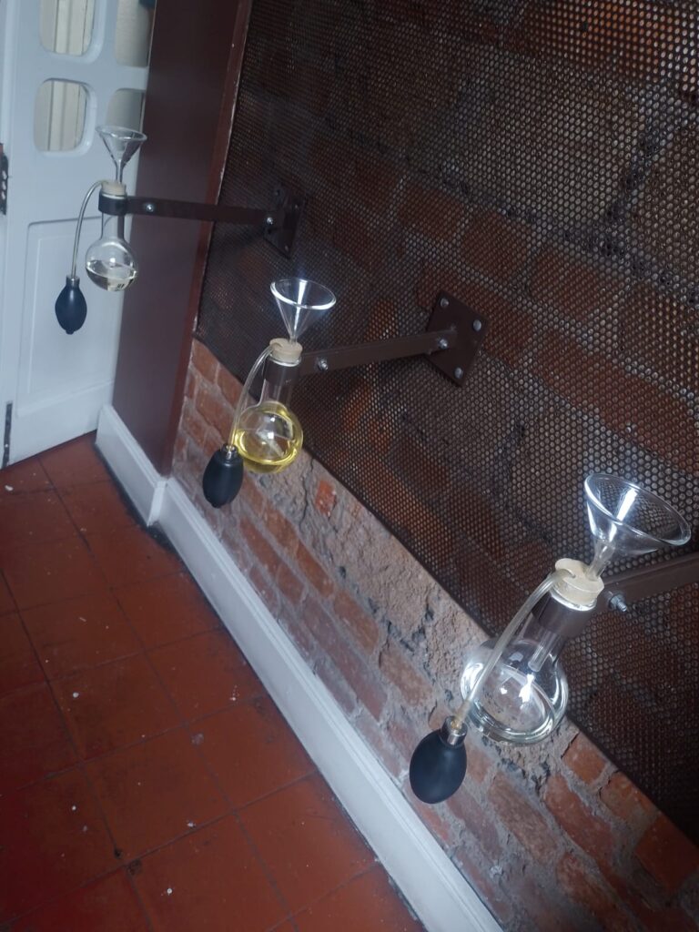 Para acceder a este último cuarto, sobre un pasillo de un metro de largo, por 50 centímetros de ancho, se encuentran una suerte de ocho perfumeros con esencias como vainilla, anís, menta, para que los visitantes las huelan y es todo, fin del recorrido.