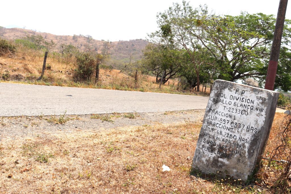 Aquí, la mojonera que marca el inicio de la superficie concesionada a mineras canadienses para la explotación de un banco de oro y plata, sin considerar la riqueza ecológica de la zona que, además, es una región habitada por pobladores originarios. Foto/ J. Jesús Lemus.